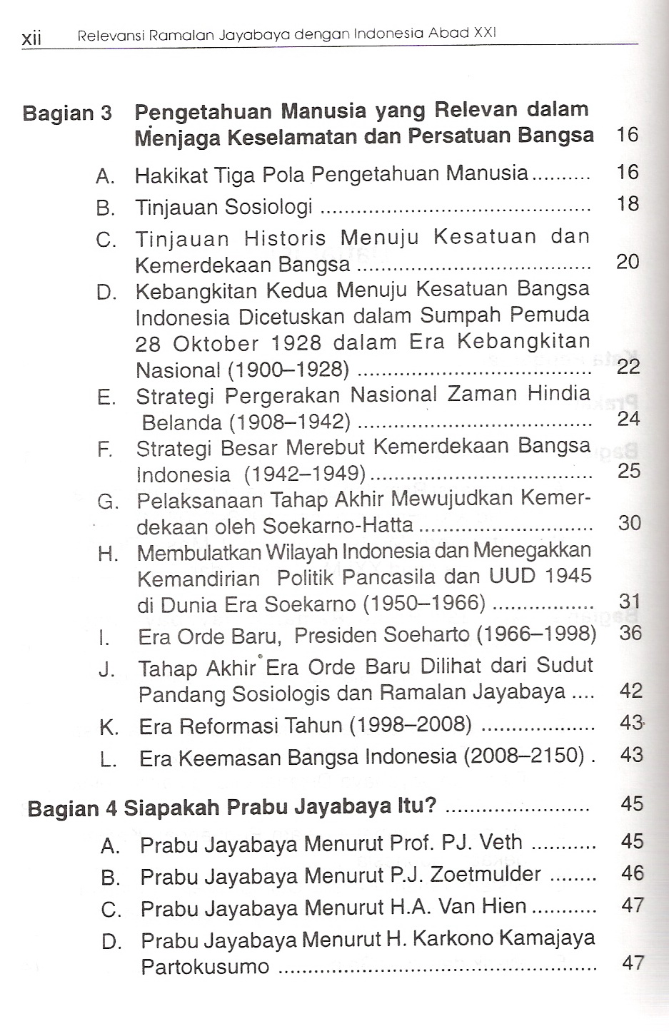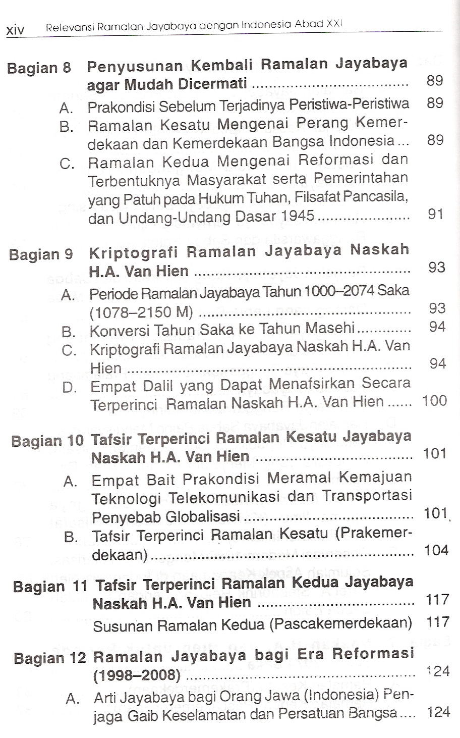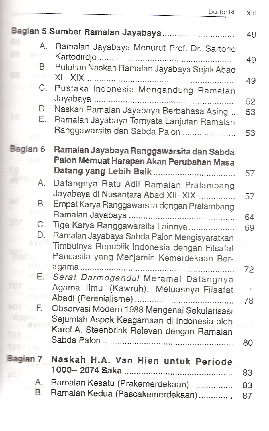 Berisi beberapa Ramalan-Ramalan dari para pemikir, diantaranya ramalan yang menunjukan datangnya kemerdekaan Indonesia tahun 1945, petuah-petuah untuk menjaga keselamatan dan persatuan bangsa.
