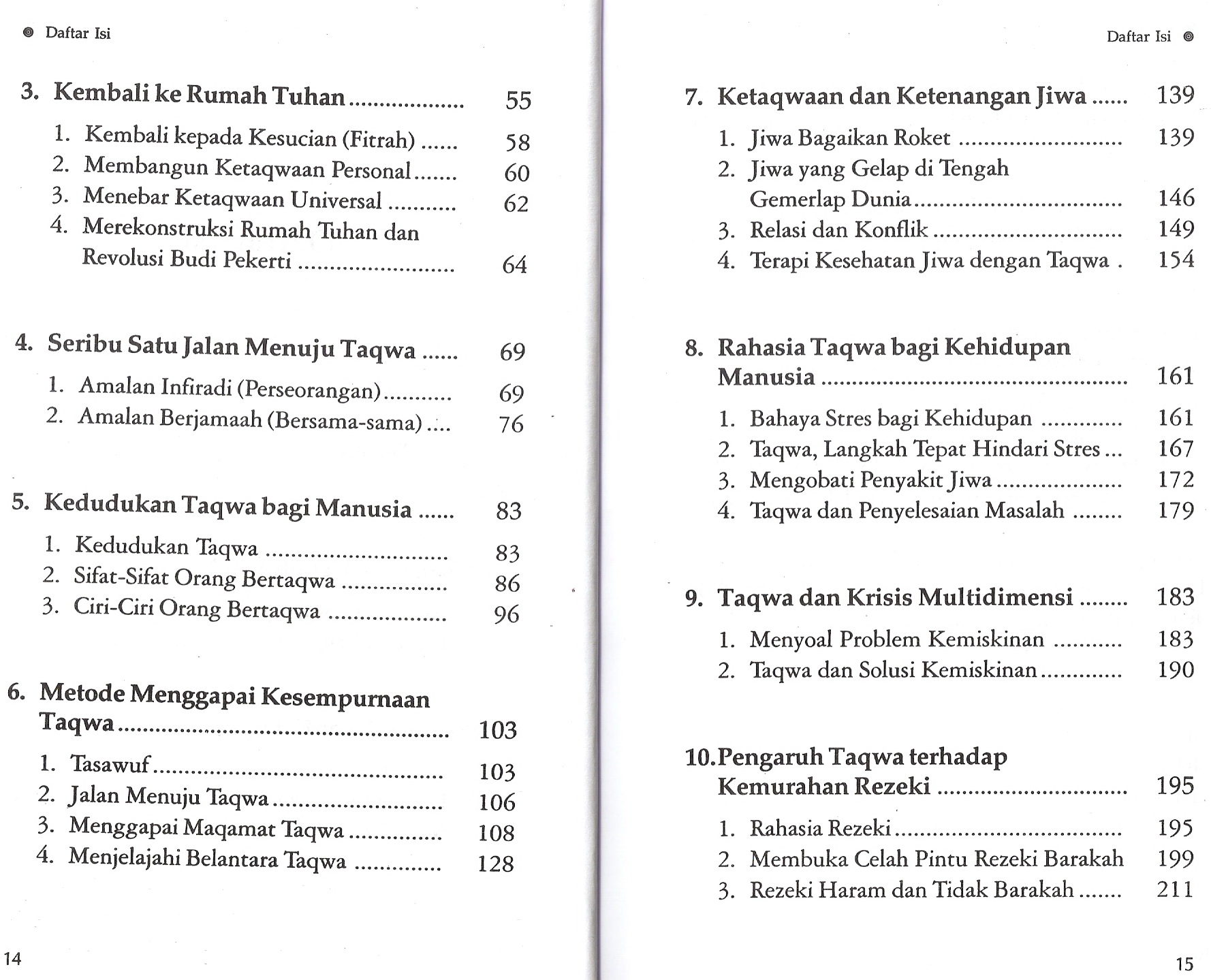 Membedah seluk beluk keajaiban fadhilah taqwa terhadap kekuatan psokologis dan kemurahan rezeki, hingga bagaimana taqwa dapat mengentaskan berbagai kesulitan hidup menjadi kelapangan yang penuh kebahagiaan.