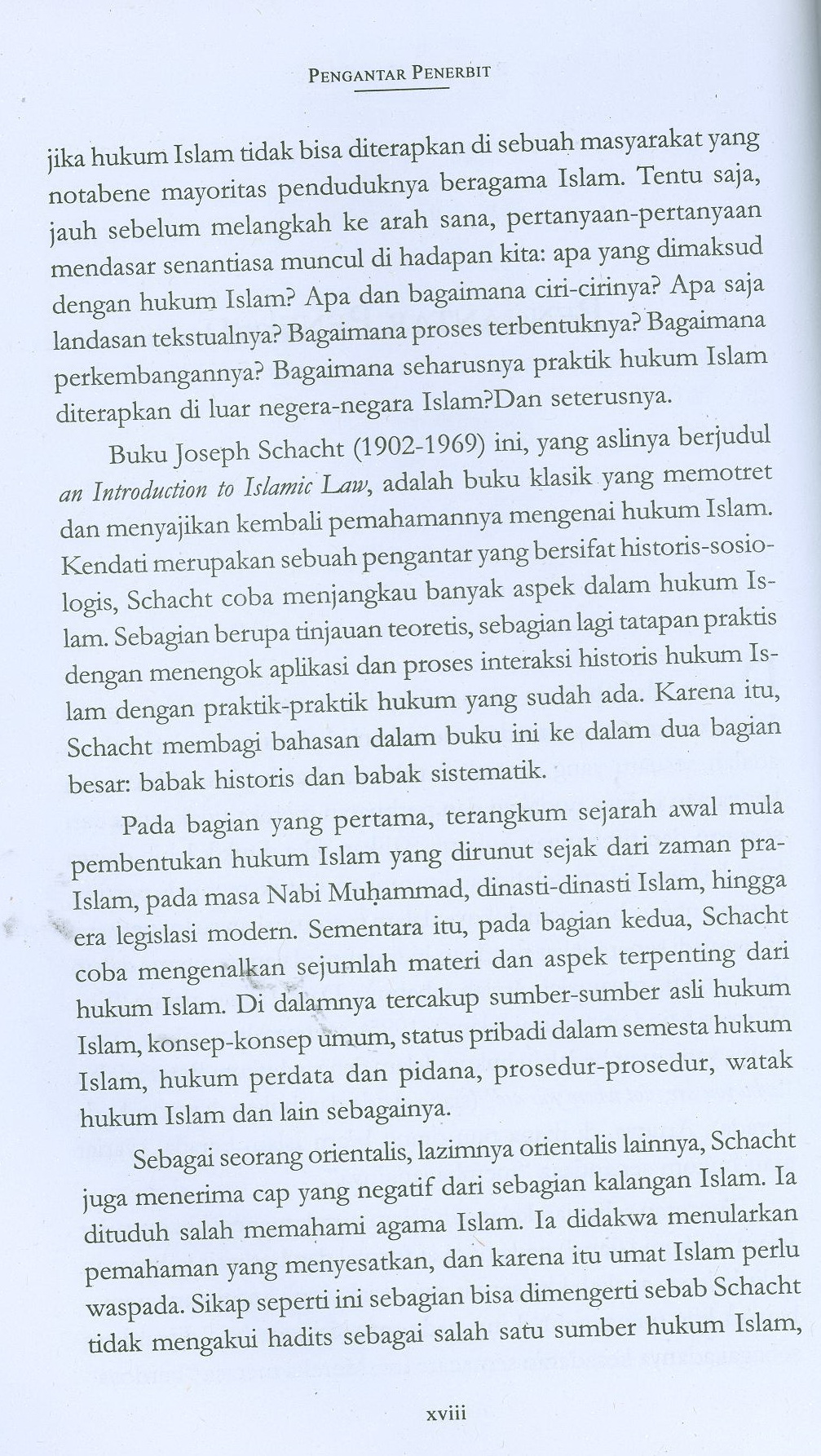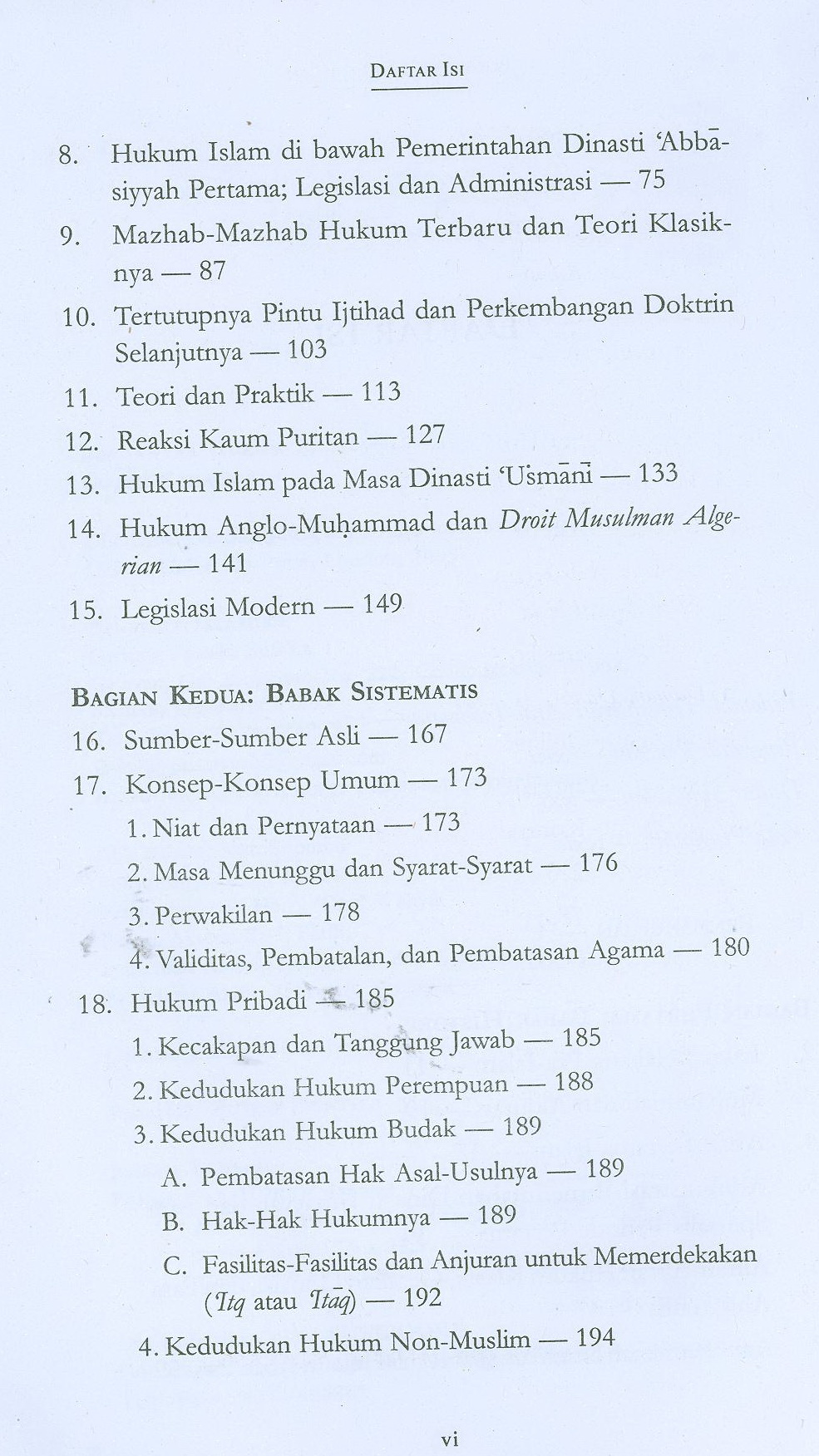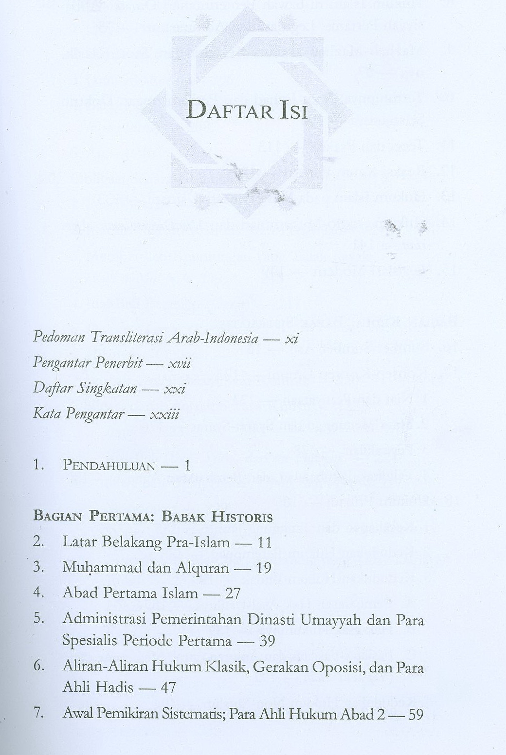 Menguraikan garis-garis besar sejarah dan perkembangan hukum Islam. Seluruh kajian modern tentang persoalan yang ada pada masa itu.