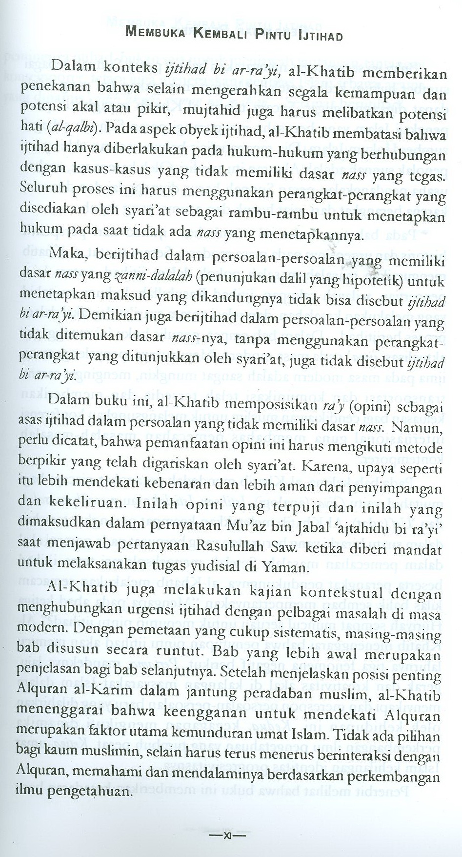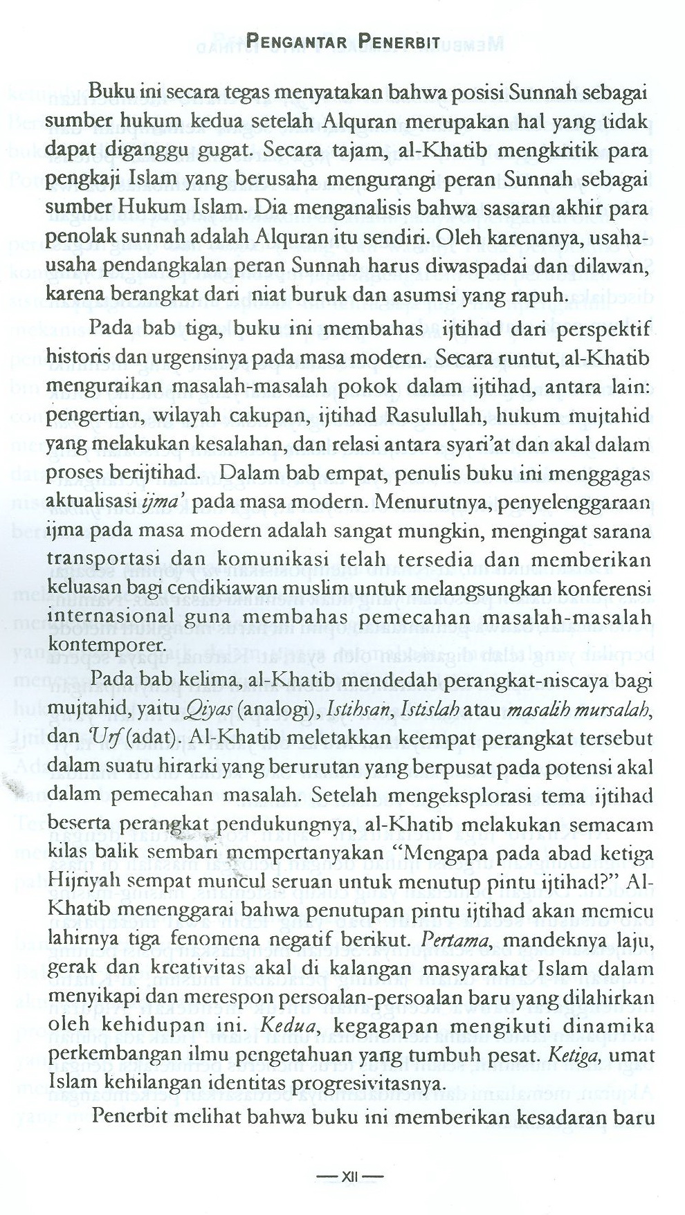 Fakta sejarah telah membuktikan bahwa energi ijtihad tidak pernah selalu padam dan selalu didengungkan. Kita juga diberi pemahaman apa itu ijtihad, siapa yang berhak melakukannya dan apa yang dapat disumbangkan ijtihad untuk menjawab persoalan Kehidupan.