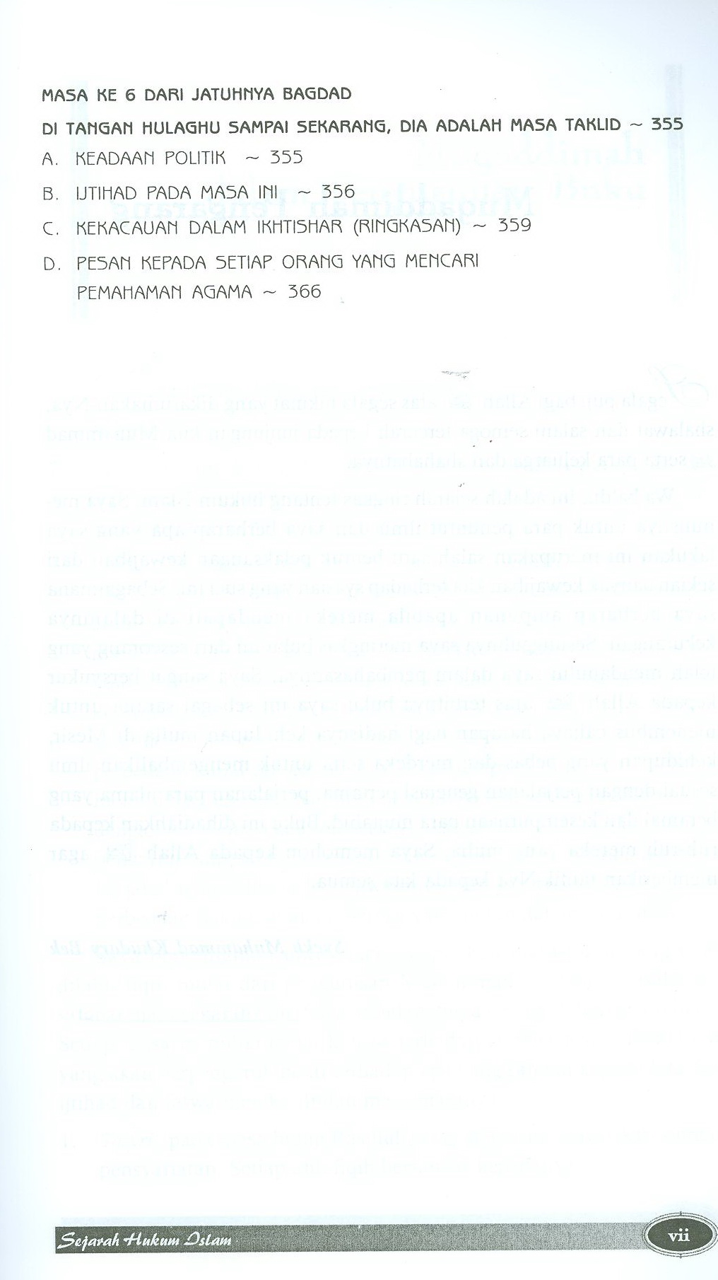 Menitik beratkan pada sejarah hukum dan para tokoh ahli ijtihad sepanjang sejarahnya, beserta contoh masalh ijtihad.