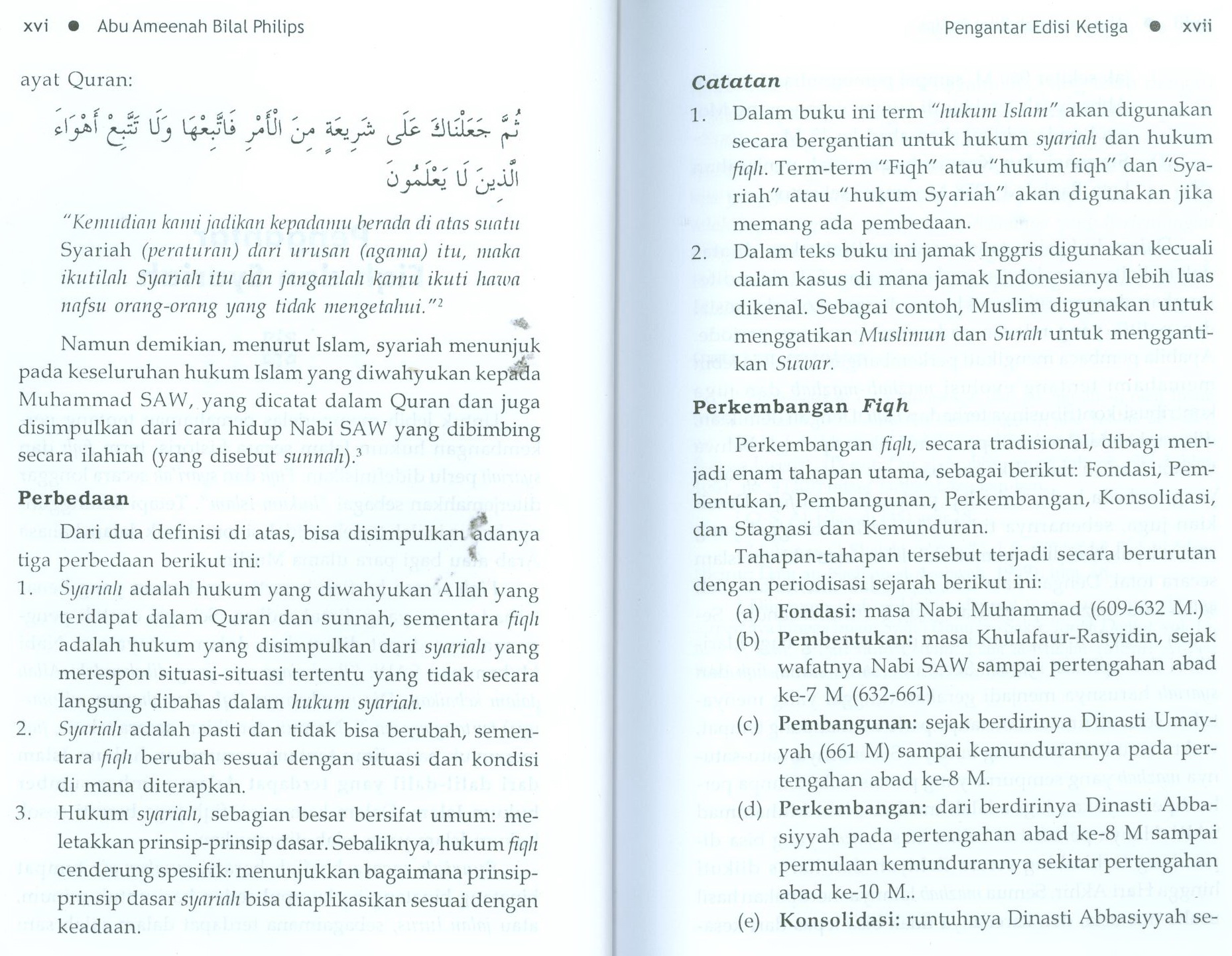 Menjelaskan tentang 6 tahapan perkembangan ilmu fiqh yaitu: Fondasi, pembentukan, pembangunan, perkembangan, konsolidasi, stagnasi serta kemunduran