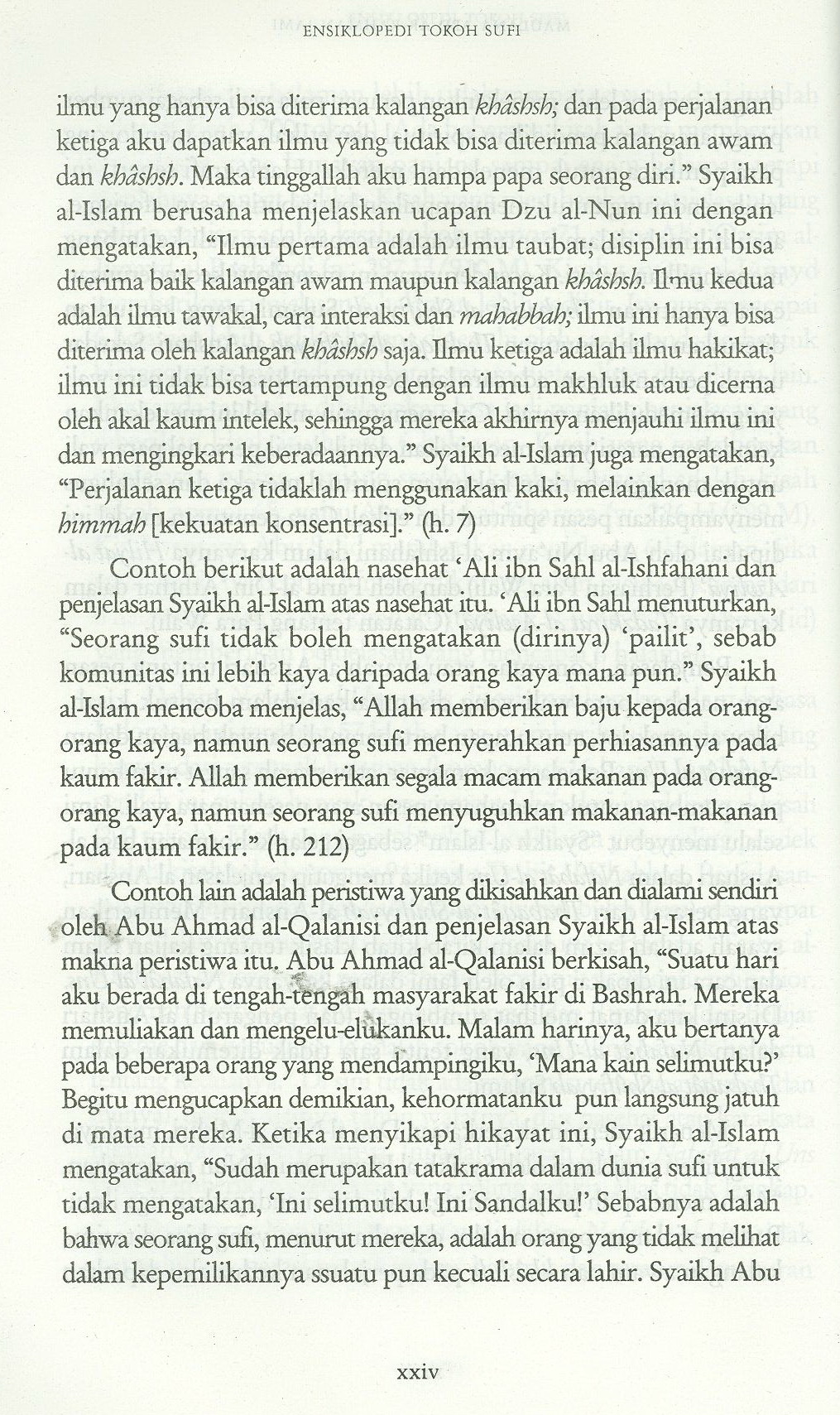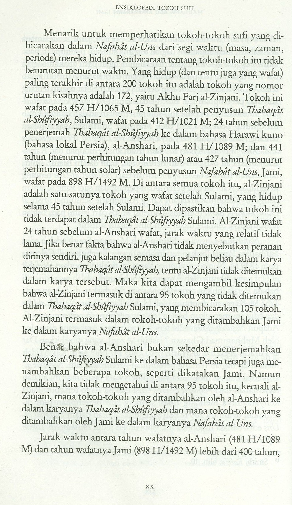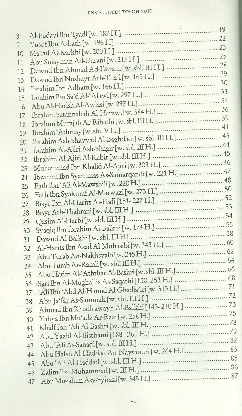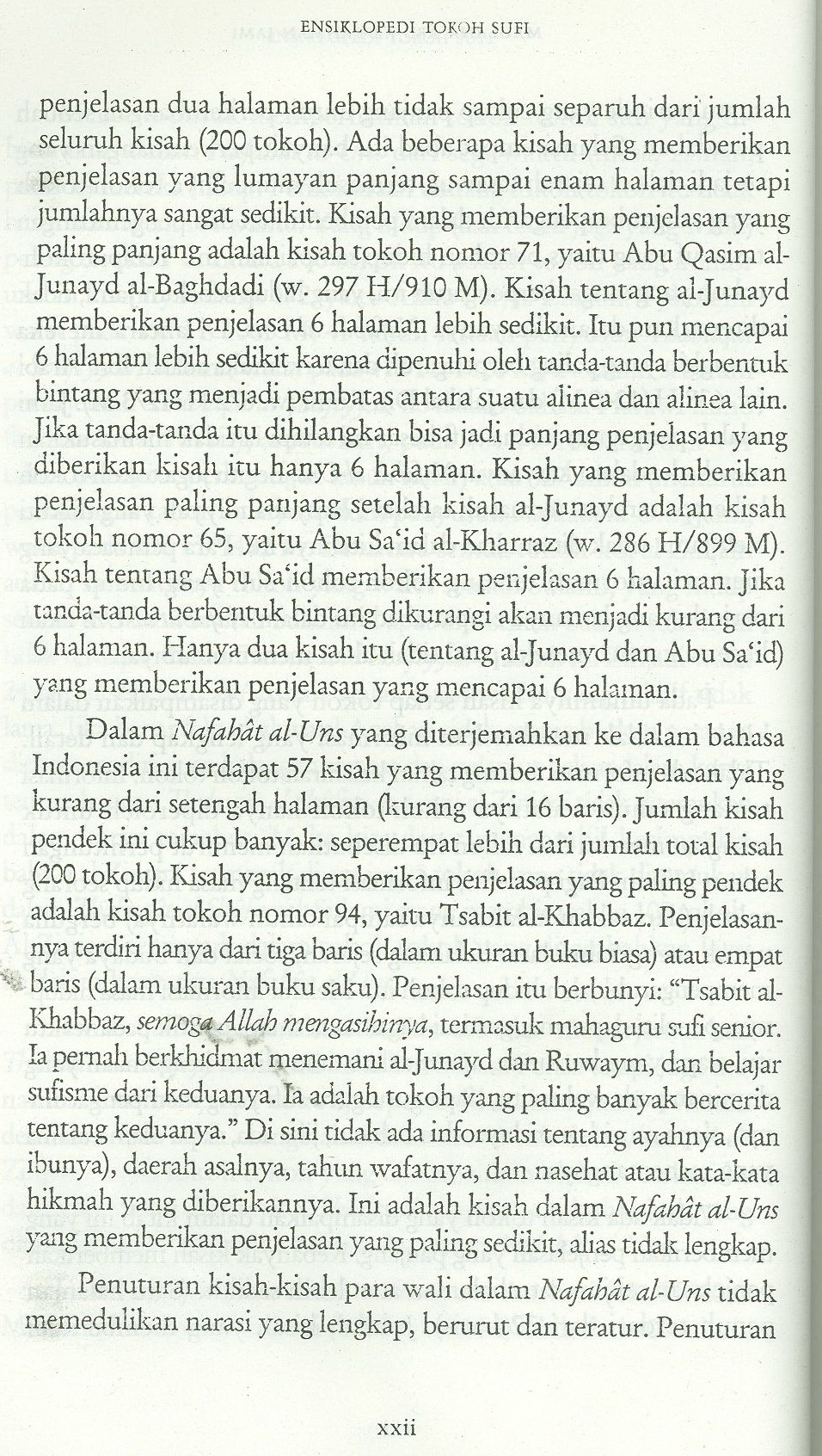 Penjelasan mengenai doktrin-doktrin penting dalam dunia tasawuf, memuat biografi 200 syekh sufi terkemuka selama kurun abad III H.