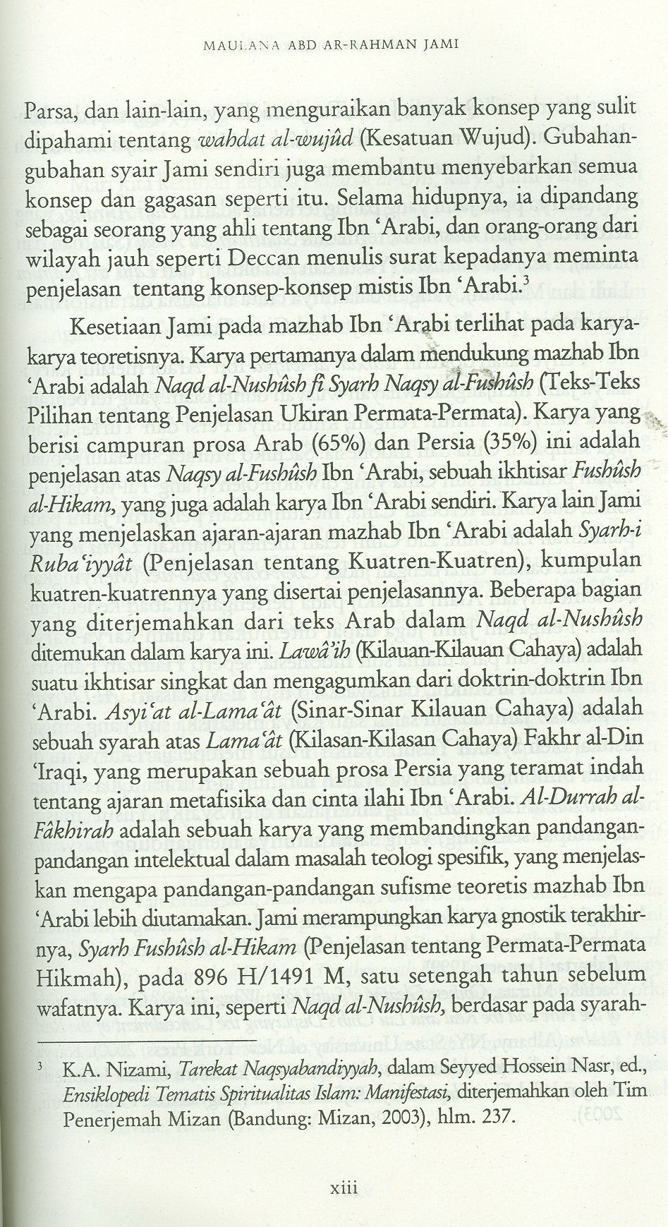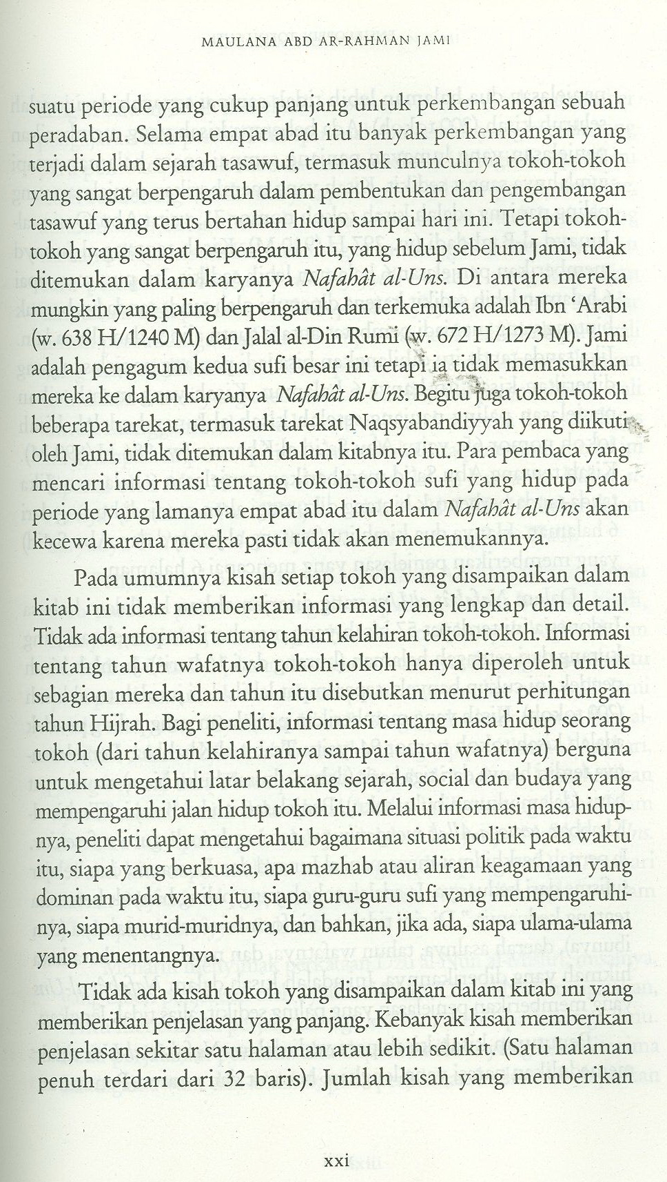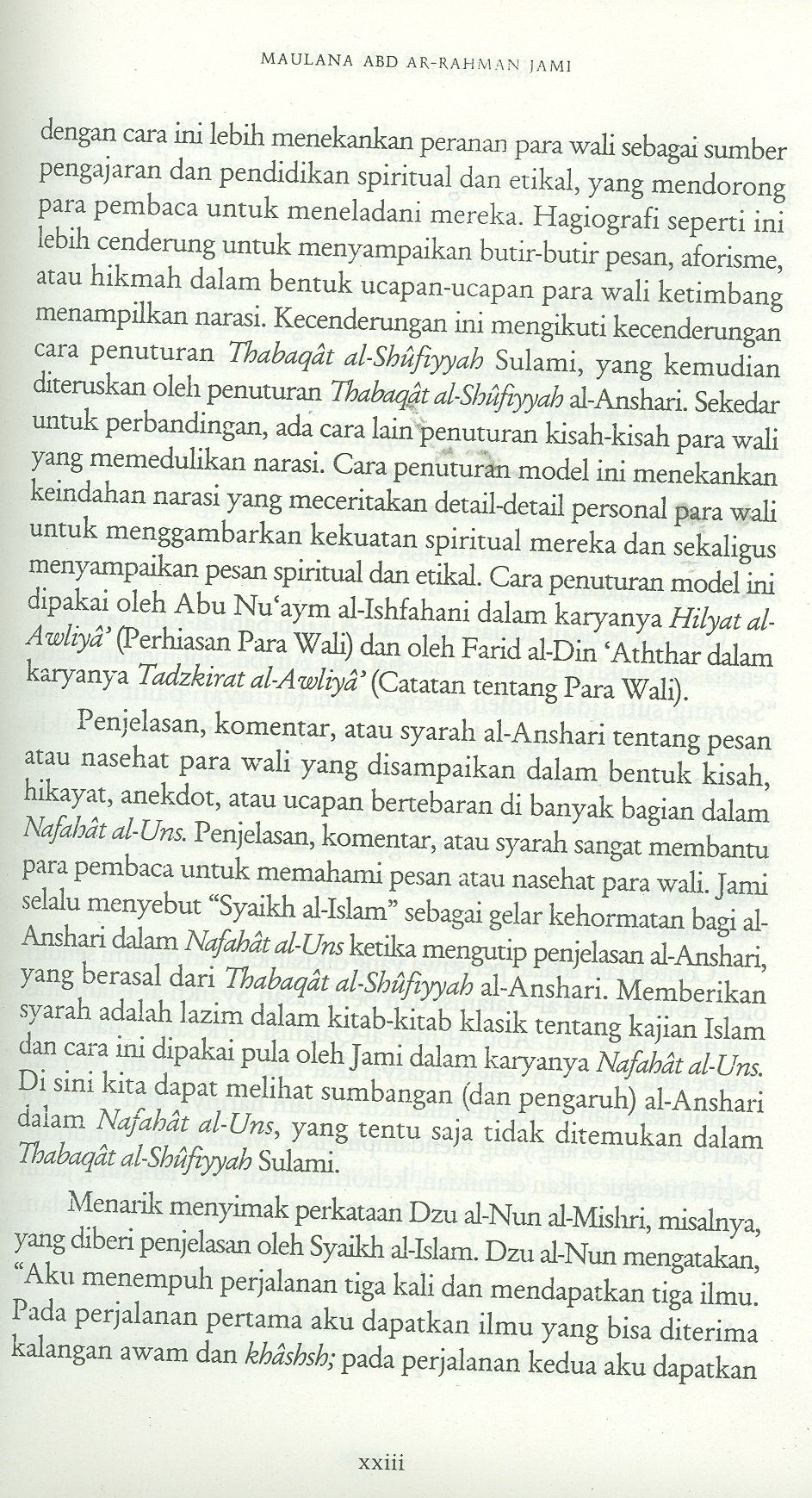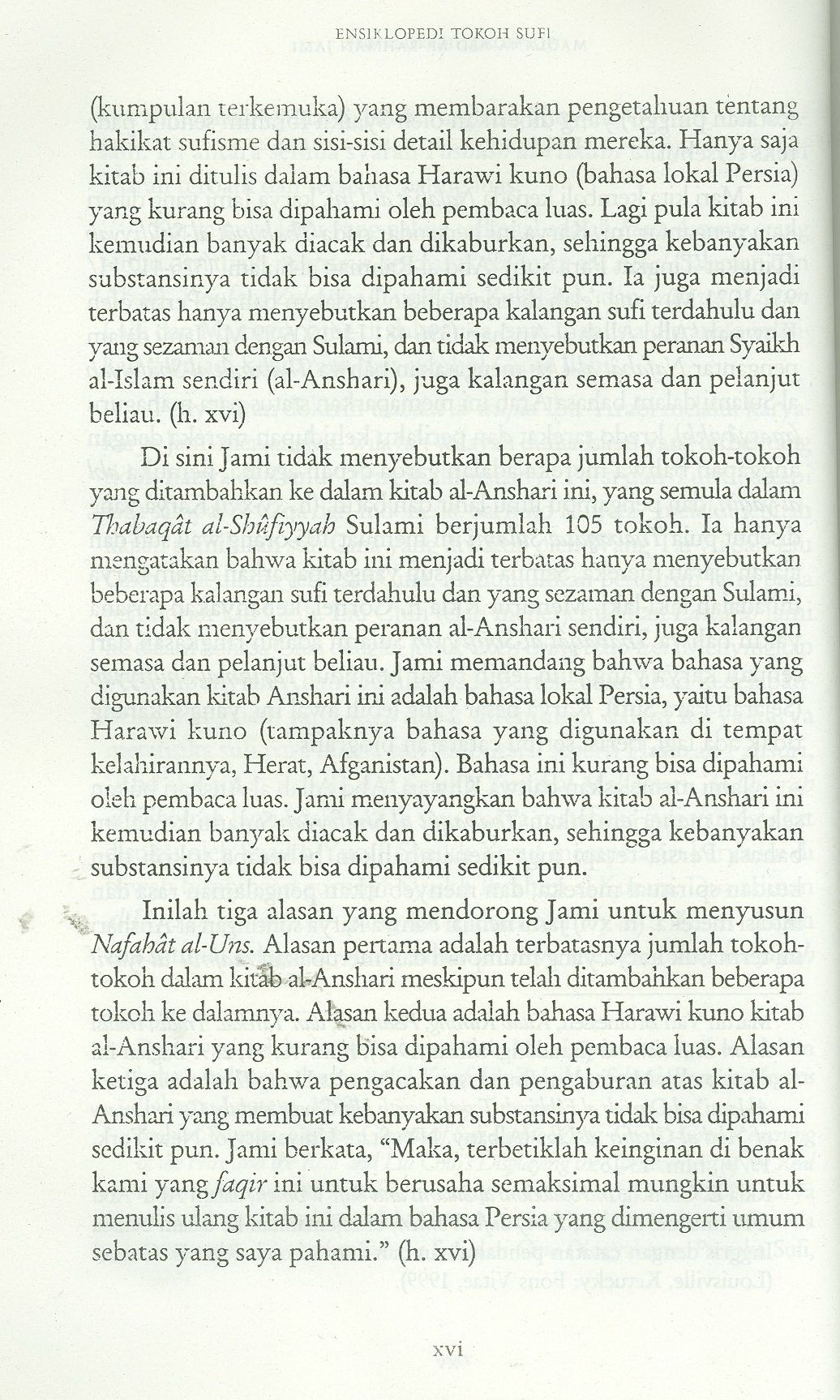Penjelasan mengenai doktrin-doktrin penting dalam dunia tasawuf, memuat biografi 200 syekh sufi terkemuka selama kurun abad III H.