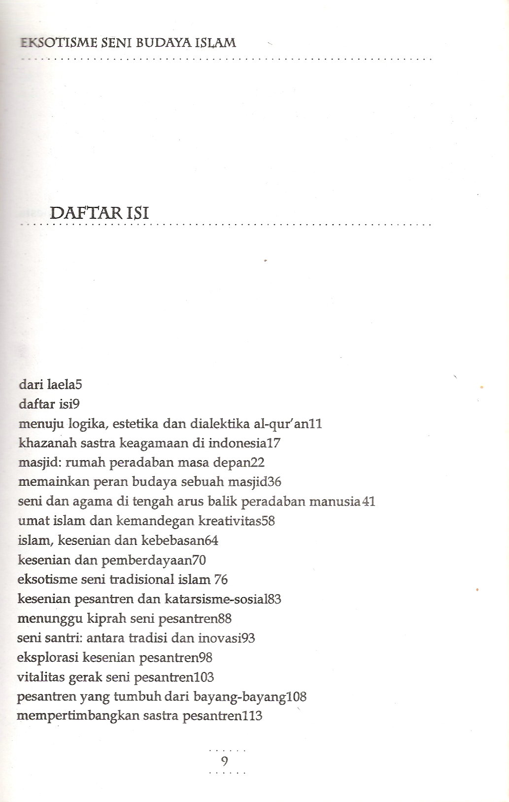 Berisi teologi seni, etos kesastrawanan, seni tradisi, dan pernik-pernik didalamnya dan berusaha mendudukkan elemen itu pada tempat yang layak.