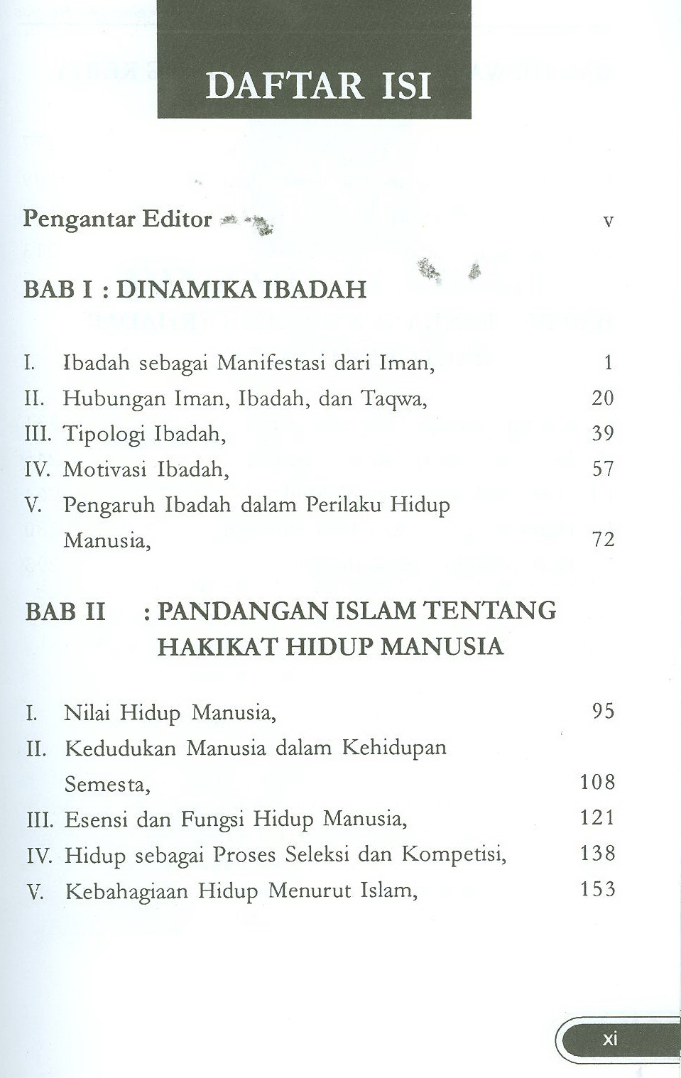 Membahas tentang kahan ibadah dengan persoalan-persoalan hidup manusia, yang disertai penelusuran dalil-dalil Al-Quran.