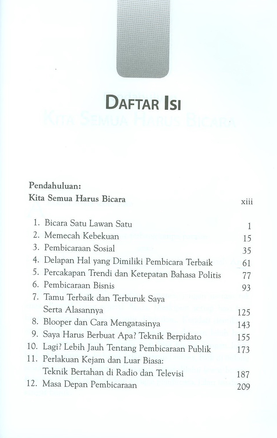 Meliputi tahapan memulai pembicaraan yang efektif, nyaman, dalam dunia bisnis, politik hingga dunia intertaiment.