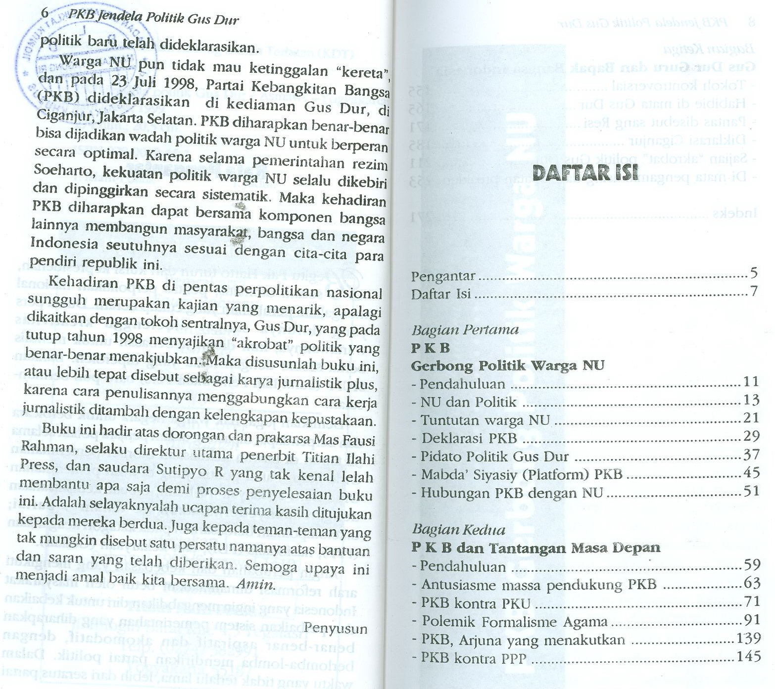 Kehadiran PKB di pentas perpolitikan nasional sungguh merupakan kajian yang menarik, apalagi dikaitkan dengan tokoh sentralnya, Gusdur pada tahun 1998 politik yang benar-benar menakjubkan.