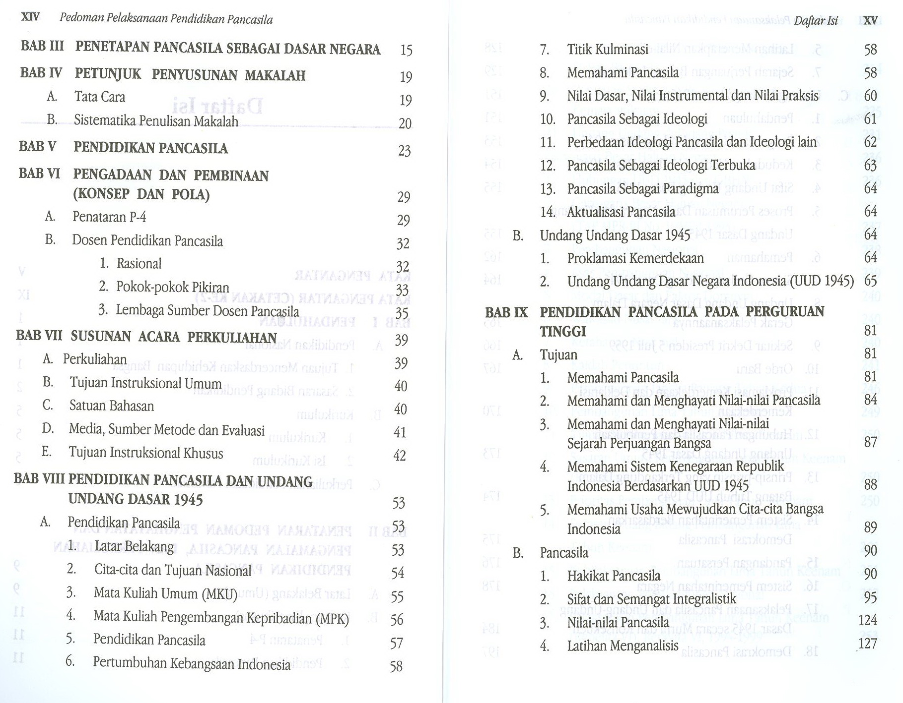 Materi dalam buku ini disesuaikan dengan kebutuhan ketentuan perundang-undangan yang terhubung dengan pedoman pelaksanaan pancasila yang berlaku saat ini dan pengembangan kepribadian.