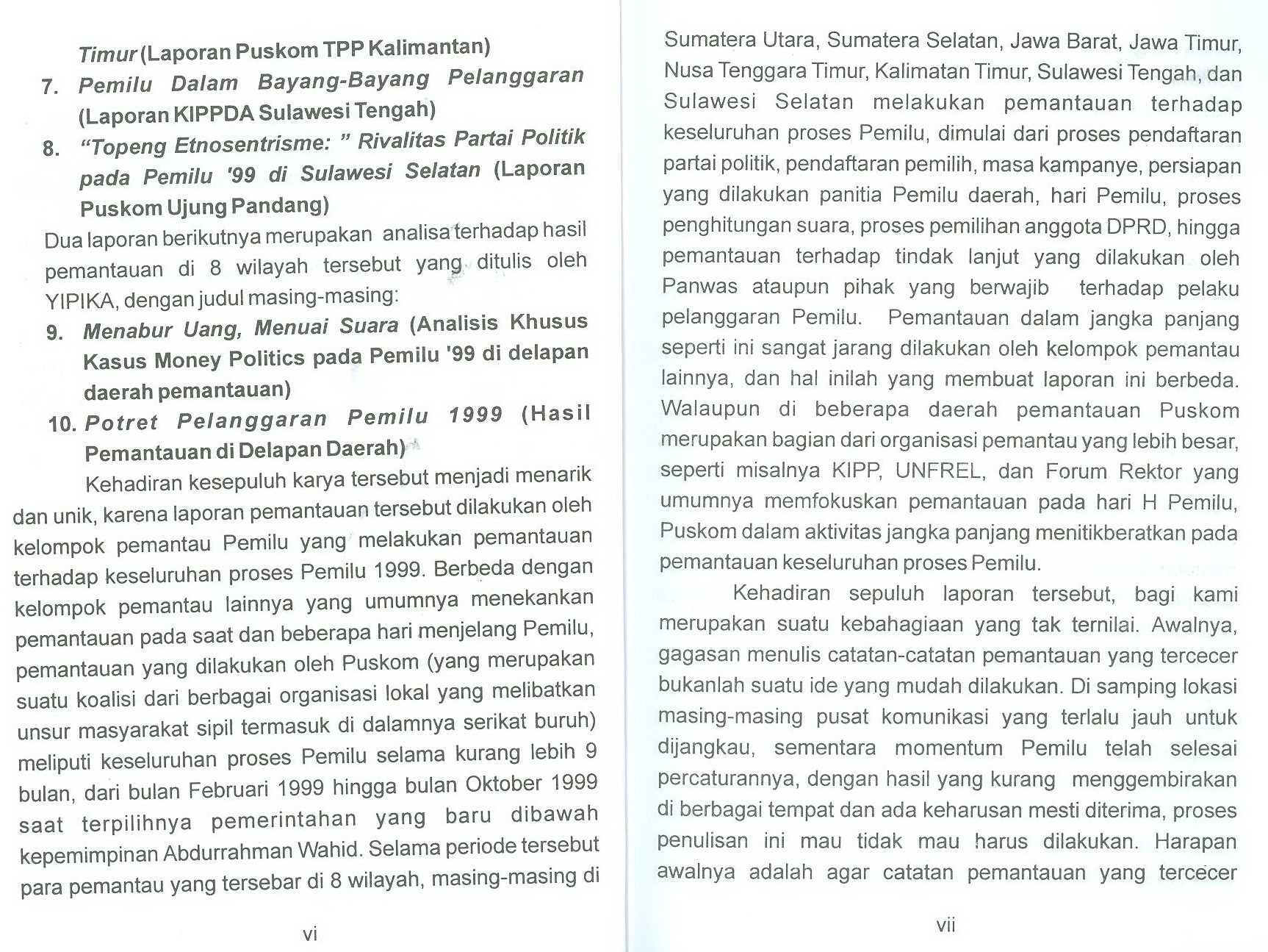 Menabur Uang, Menuai Suara: Analisis Kasus Money Politics Pada Pemilu '99 Di Delapan Daerah Pemantauan.