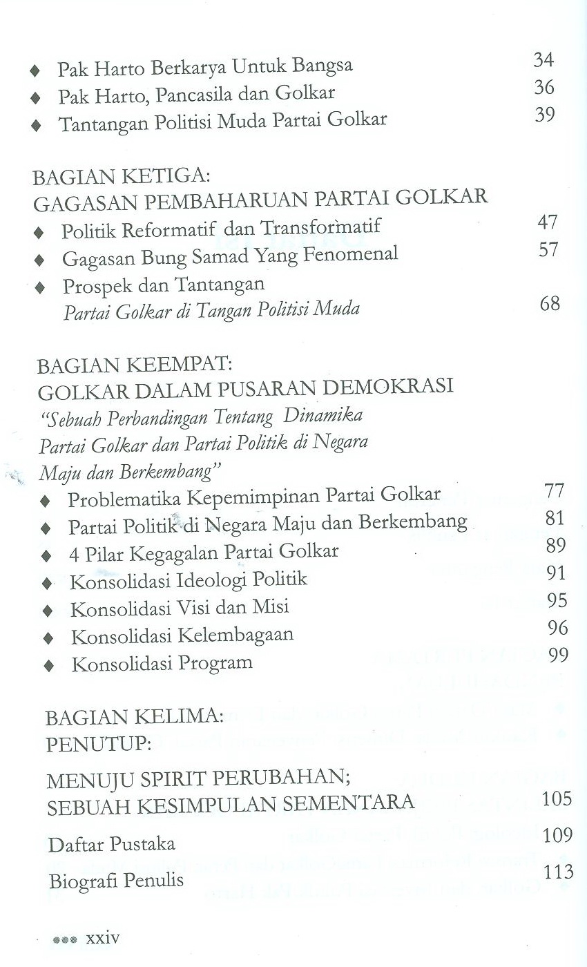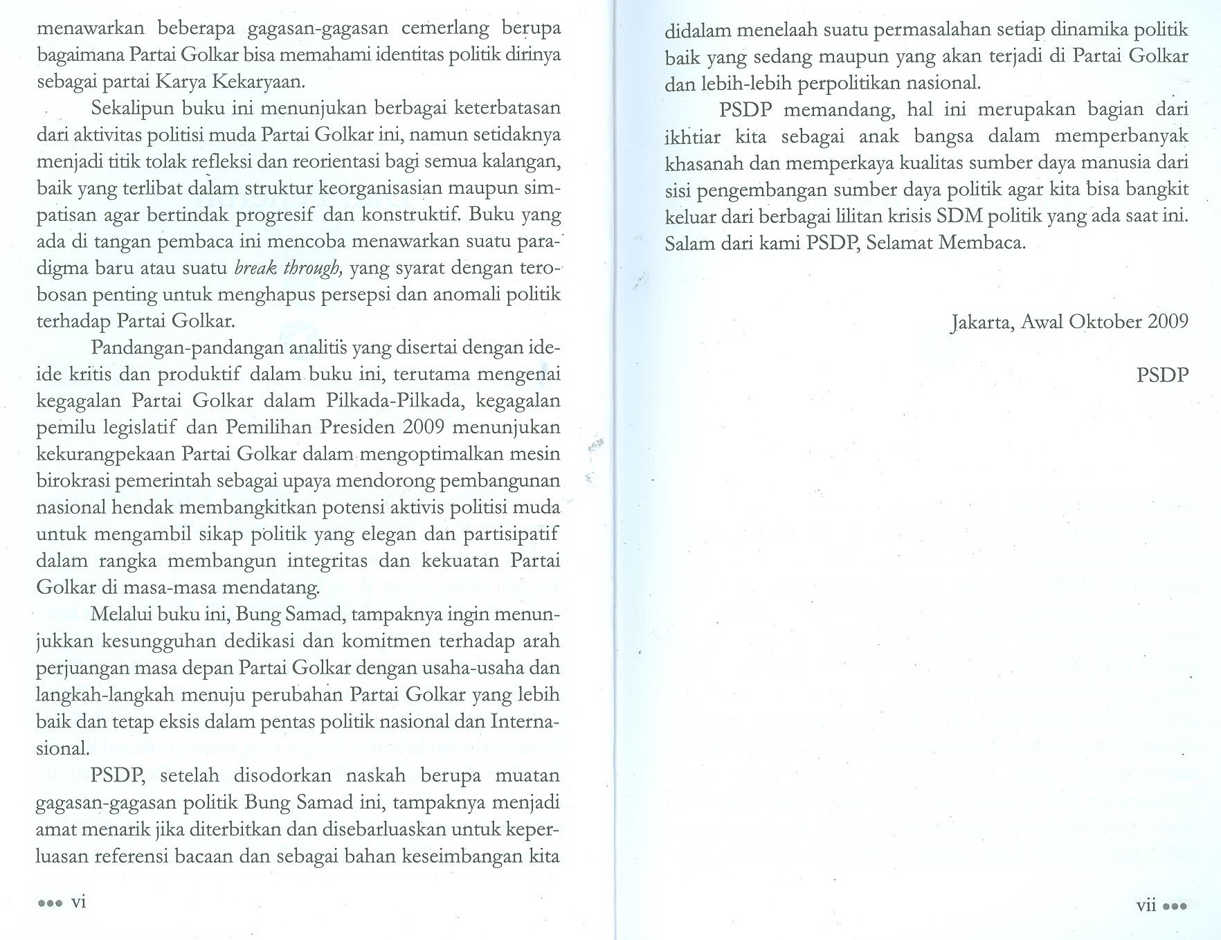 Melalui buku ini, Bung Somad, tampaknya ingin menunjukkan kesungguhan dedikasi dan komitmen terhadap arah perjuangan masa depan partai Golkar dengan usaha-usaha dan langkah-langkah menuju perubahan partai golkar yang lebih baik dan tetap eksis dalam pentas politik Nasional dan Internasional.