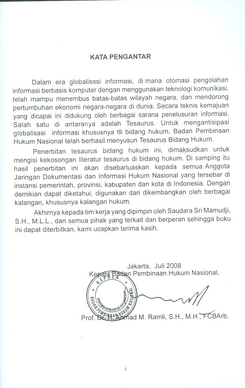 Penerbitan tesaurus bidang hukum ini, di maksud untuk mengisi kekosongan literatur tesaurus di bidang hukum