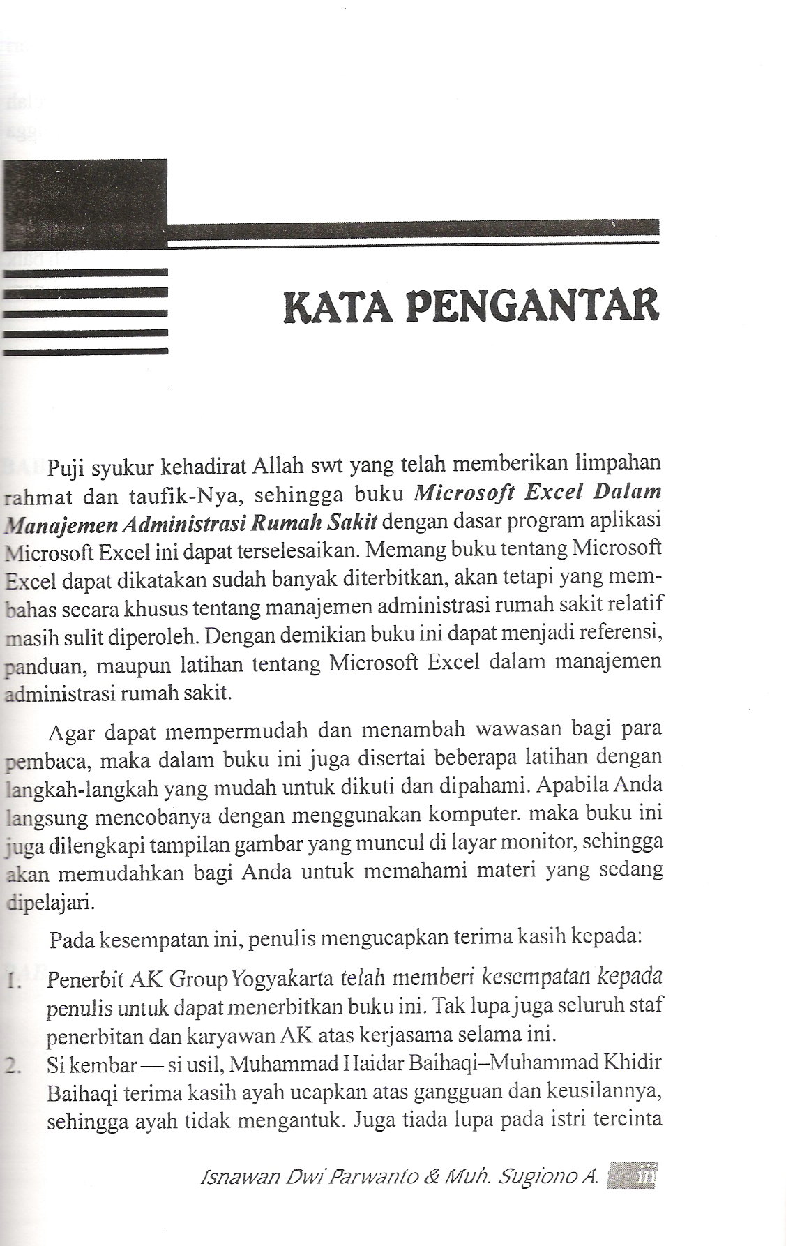 Membahas secara khusus tentang manajemen administrasi Rumah sakit dengan menggunakan MS.Excel.