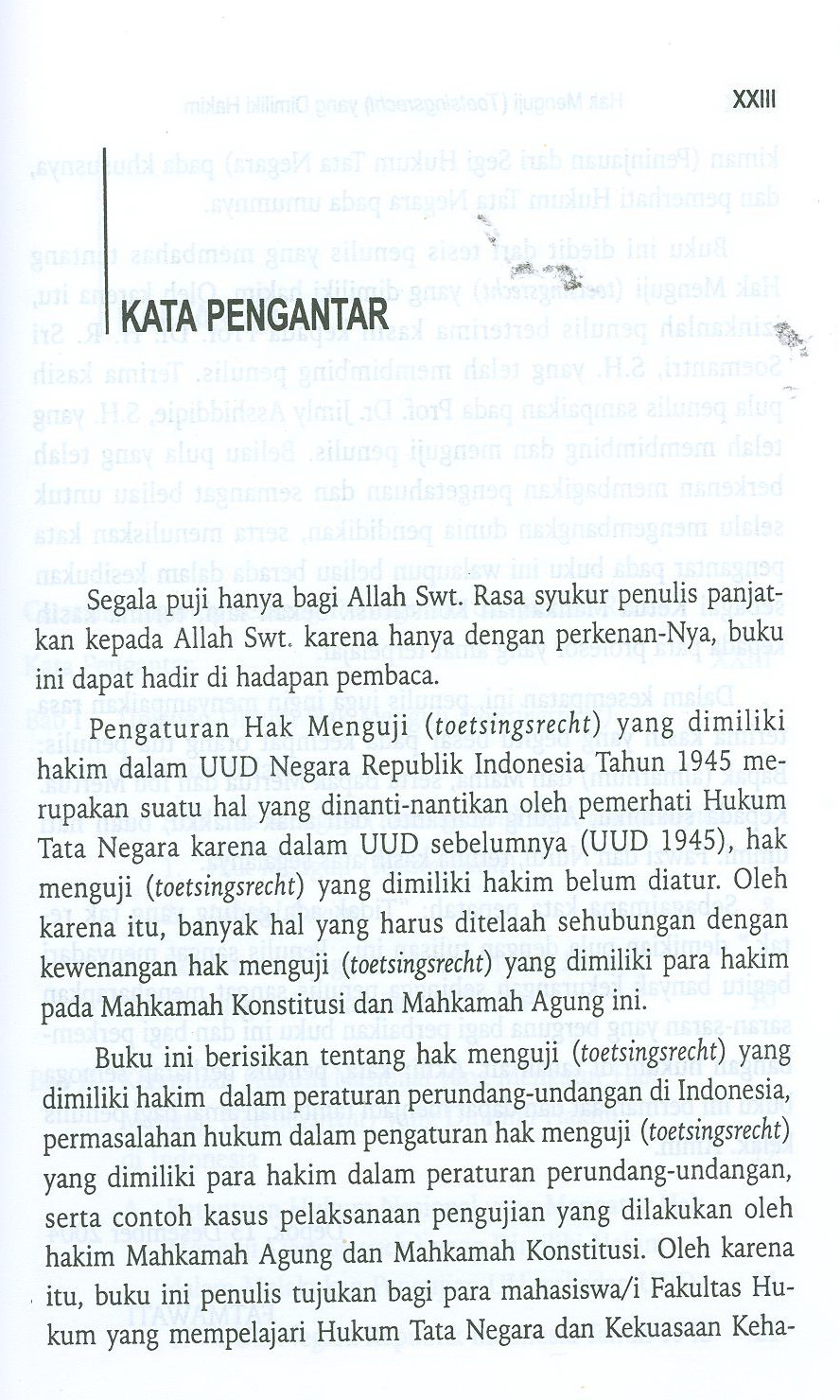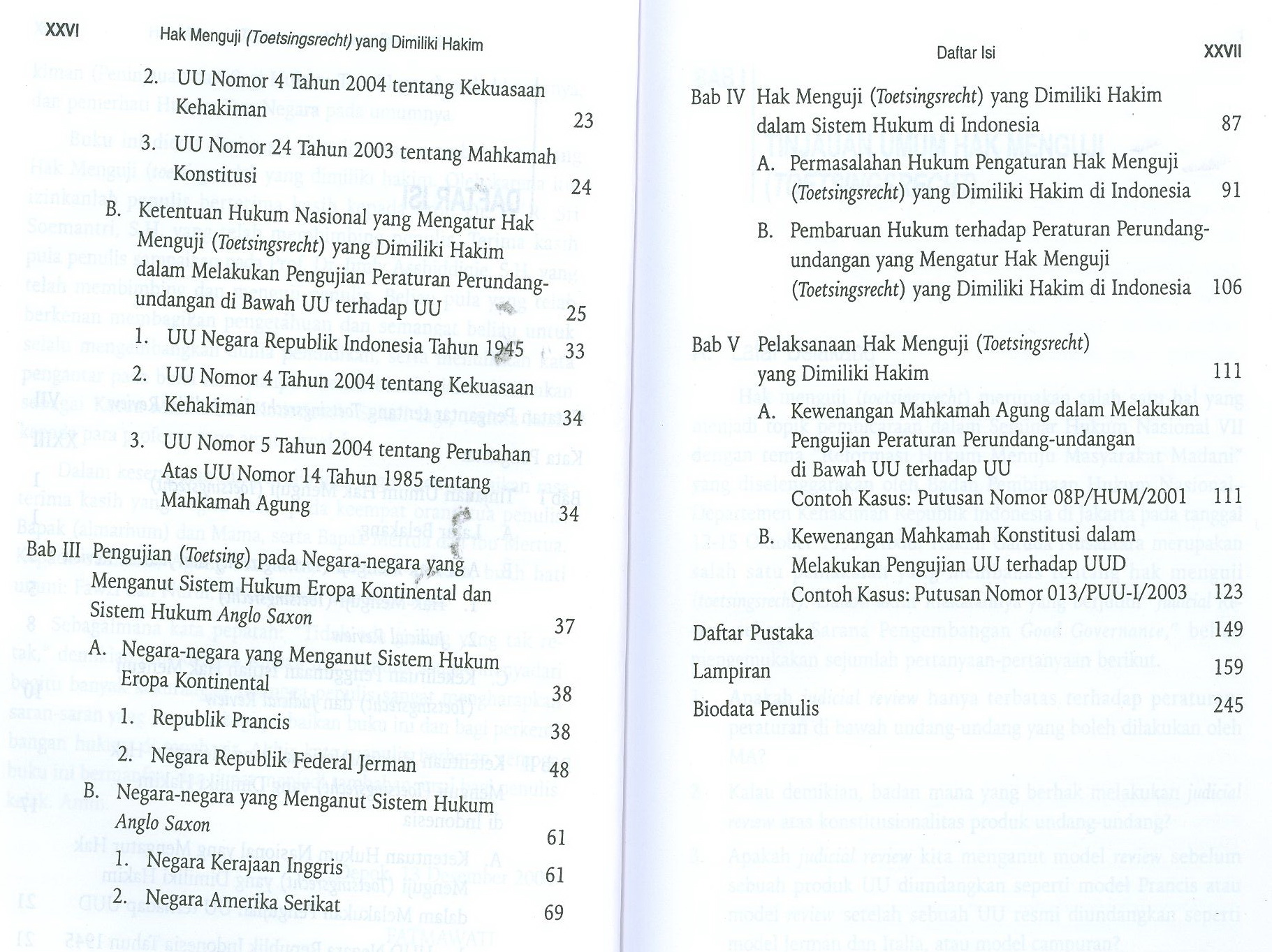 Buku ini memberikan penjelasan mengenai ketentuan dan pelaksanaan hak menguji dalam sistem hukum indonesia yang berkaitan dengan dua lembaga.