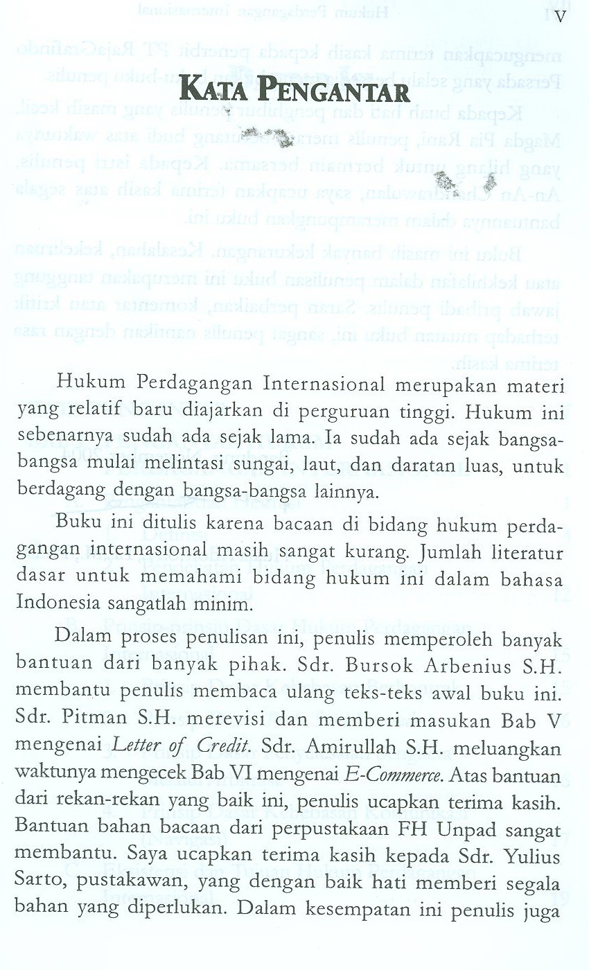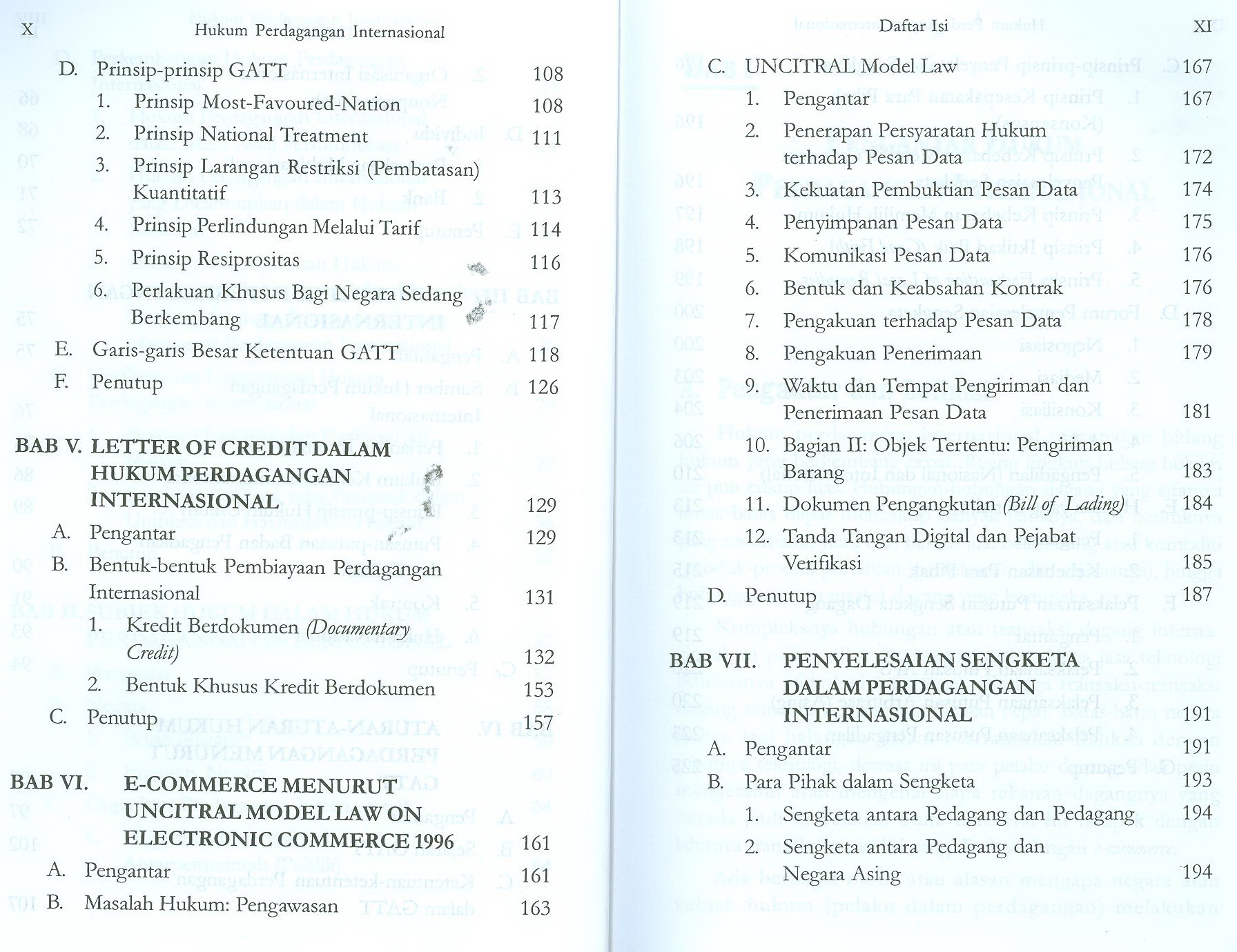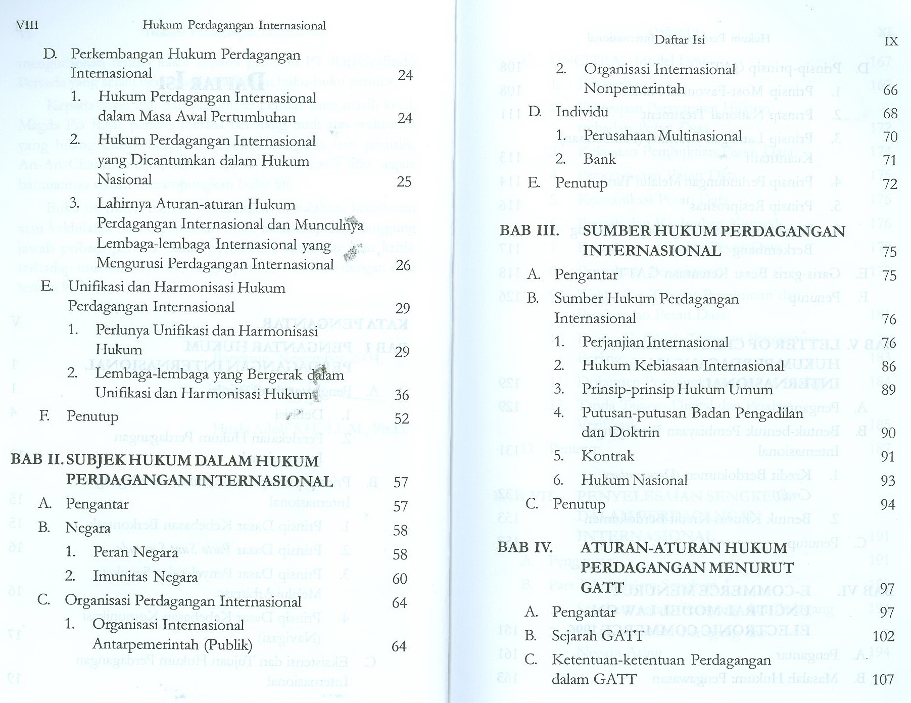 Buku ini ditulis untuk memenuhi kebutuhan referensi di bidang hukum perdaganganInternasional yang dianggap masih sangat kurang.