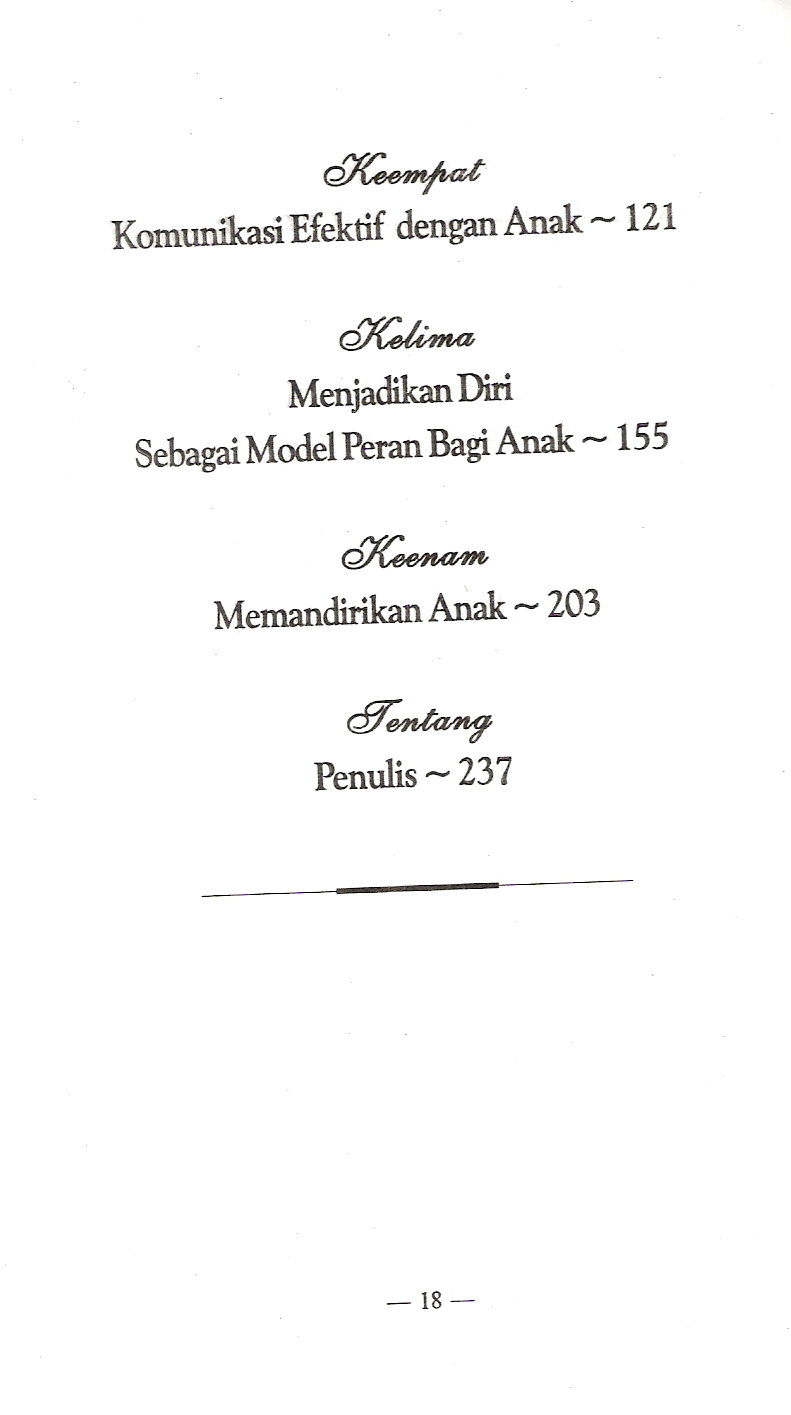 Memaparkan enam kiat agar anda sebagai Orang tua mampu berendah hati untuk berusaha memahami anak anda, belajar menjadi Orang tua yang baik, menyediakan pendidikan berkualitas khusus untuk keluarga, berkomunikasi secara baik dengan anak, menjadikan diri sebagai model peran bagi anak dan berusaha memandirikan anak.