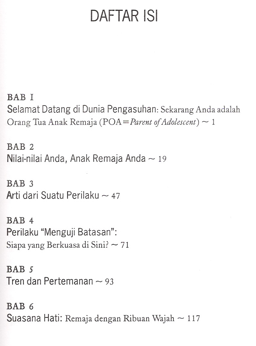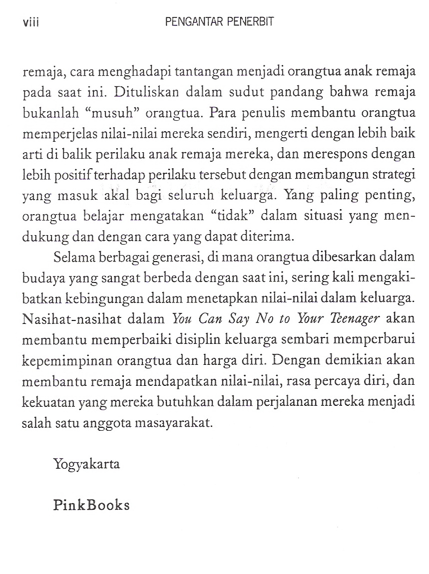 Berisi dorongan bagian orang tua untuk mengatakan tidak pada remaja, secara kreatif, persuasif dan positif, menawarkan ide-ide baru dalam menyikapi polah tingkah anak remaja yang boleh jadi berbeda dengan nilai orang tua